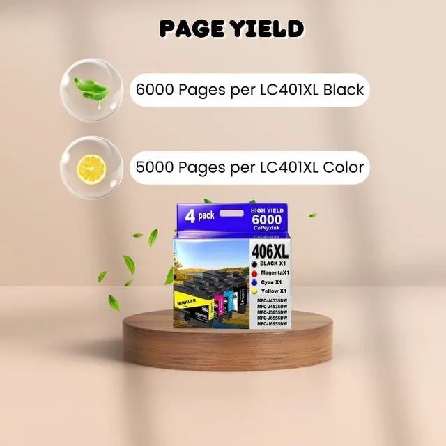 ^^ High Page Yield: Up to 6000 Pages per LC406XL Black XL ink cartridge, 5000 Pages per LC406XL Color Standard ink cartridge ^^