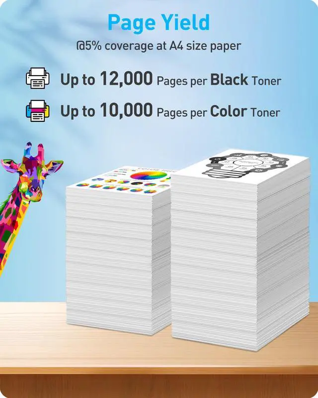 Page Yield: up to 12, 000 pages per black toner, up to 10, 000 pages per color toner, @5% coverage at A4 size paper ^^
