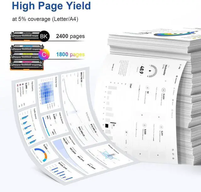 High Page Yield: Up to 2, 400 pages per 128A black toner cartridge and 1, 800 pages per 128A color toner cartridge (Letter/A4, at 5% Coverage, depends on printer and usage) ^^