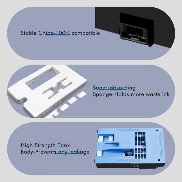 ^^ Upgraded chips: MC10 Ink Maintenance Box with chip high quality spongebuilt-in sponge pad can absorb waste ink well and prevent ink overflow.