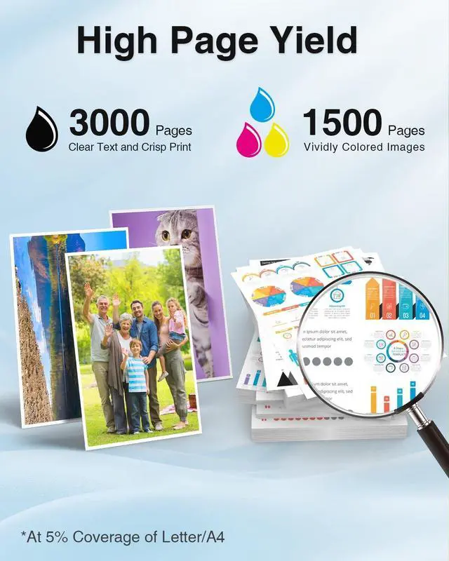 ^^ High Page Yield: UP to 3, 000 pages for LC402XL black ink cartridge, and 1, 500 pages for LC402XL color ink cartridge (Letter/A4, at 5% coverage).