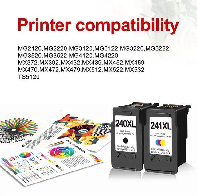 Package Contents: 1 pack PG-240xl black and 1 pack CL-241xl color ink cartridge ^^ The 240xl 241xl combo pack compatible with: MG3620 MG3600 MG2120 MG2220 MG3120 MG3122 MG3220 MG3222 MG3520 MG3522 MG3622 MG4120 MG4220 ^^