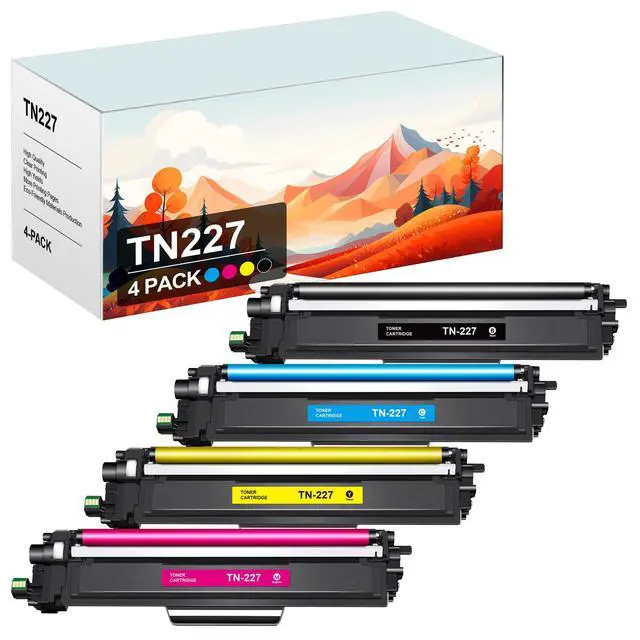 Introducing the TN-227 TN227 Compatible Toner Cartridge Replacement for HL-L3270CDW HL-L3210CW HL-L3230CDW HL-L3230CDN HL-L3290CDW MFC-L3710CDW MFC-L3750CDW MFC-L3770CDW Printers. This 4 pack set includes 1 Black, 1 Cyan, 1 Magenta, 1 Yellow cartridge, ensuring vibrant, crisp prints for all your printing needs. Enjoy exceptional print quality and consistency with these high-quality Toner Cartridge. The TN227 Black cartridge delivers sharp, professional-looking text, while the TN227 color cartridges produce vivid and true-to-life images and graphics. Each cartridge is filled with premium quality ink that resists fading, smudging, and water damage.
