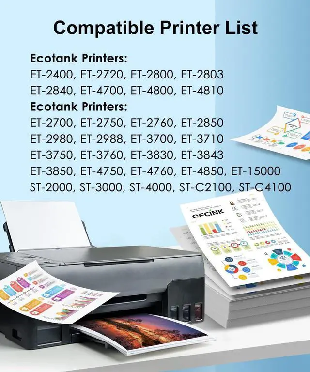 EcoTank Printers: Replacement for 502 ink refill works with EcoTank ET-2700, ET-2750, ET-2760, ET-2850, ET-2980, ET-2988, ET-3700, ET-3710, ET-3750, ET-3760, ET-3830, ET-3843, ET-3850, ET-4750, ET-4760, ET-4850, ET-15000, ST-2000, ST-3000, ST-4000, ST-C2100, ST-C4100no mismatches, seamless use. ^^ Full Compatibility with