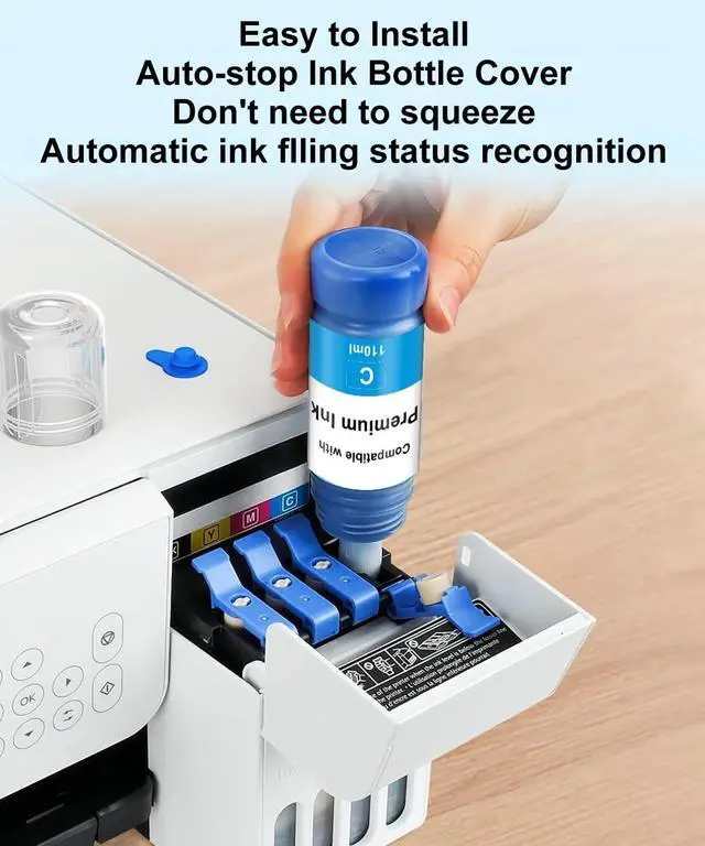 Spill-Free Refilling: Replacement for 502 ink refill bottles equipped with an auto-stop feature, replacement for 502 ink refills eliminate spills and simplify refilling. Top up your EcoTank printer easily, keeping your workspace neat.