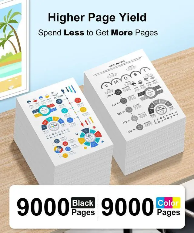 ^^ Fewer Replacements: 110ml replacement for 502 black ink prints up to 9000 pages; 110ml replacement for 502 color ink (combo) also 9000 pages (5% A4 coverage)reducing replacement frequency. ^^ Crisp Text, Vibrant