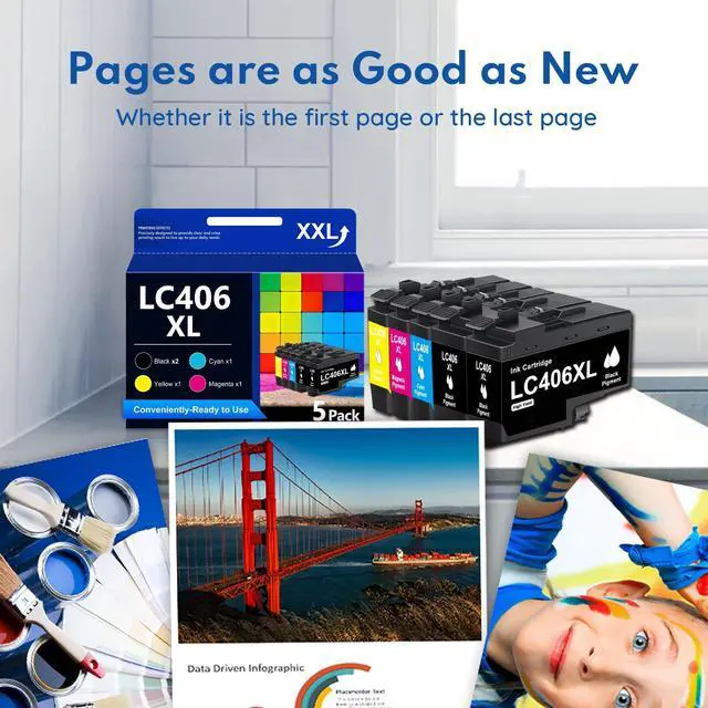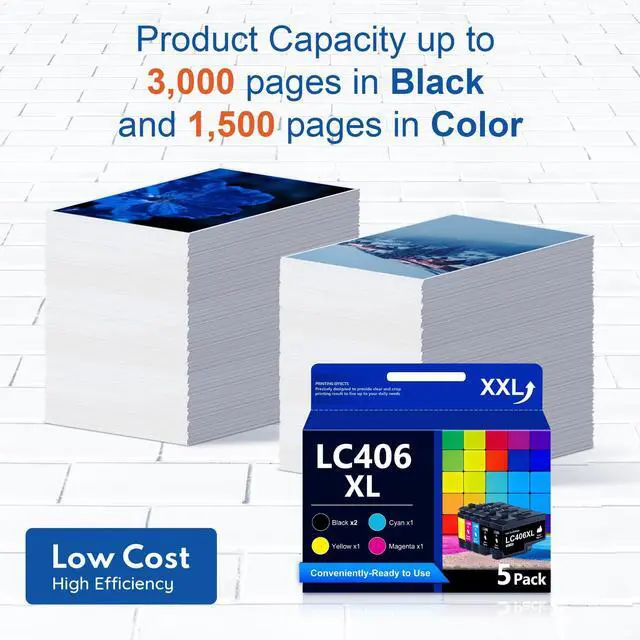 Large capacity design: LC406XL ink cartridge can print about 3, 000 pages in black and 1, 500 pages in color (ink coverage of 5% of A4 paper size) ^^