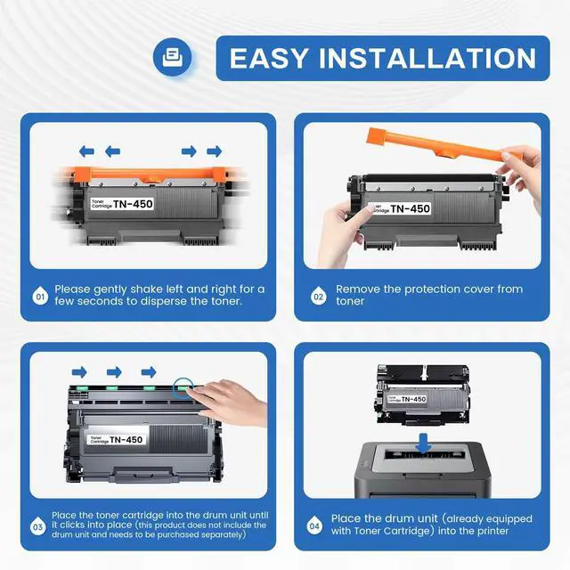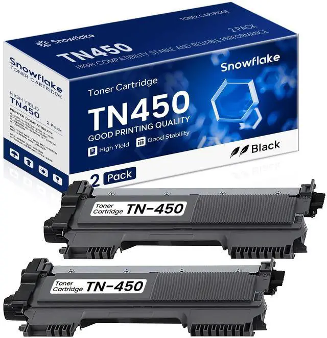 The package contains: 2 Pack TN450 TN-450 High Yield Black Toner Cartridge.