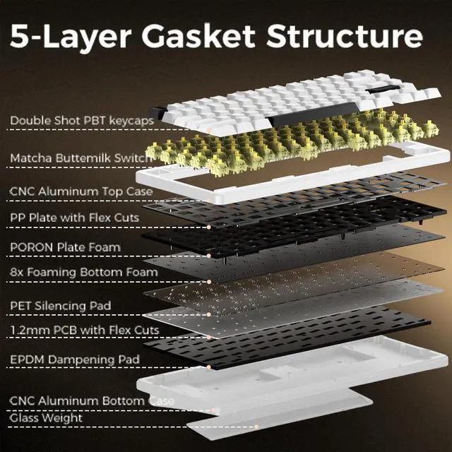 It comes pre-installed with smooth, factory-lubed Matcha Buttermilk linear switches, developed in collaboration with HMX. Combined with durable OEM profile PBT keycaps, this keyboard delivers a buttery-smooth and consistent typing feel right out of the box.