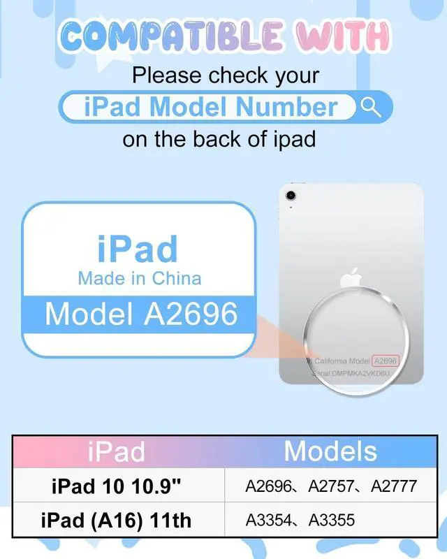 Model: This cute cartoon tablet case is designed specifically for iPad (A16) 11th Generation 11 inch 2025/for iPad 10th 2022(modle number: A2696A2757A2777), not for any other models, please confirm your tablet model number before purchasing ^^