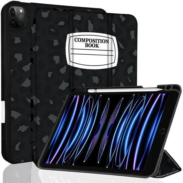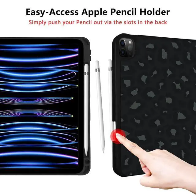 TopPerfekt for iPad Pro 11 Inch Case 2022(4th Gen)/2021(3rd Gen)/2020(2nd Gen) with Pencil Holder, TPU Shockproof Frame and Protective Leather Cover [Auto Sleep/Wake] Black Grey Leopard