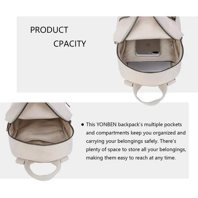 DescriptionIf you're looking for a compact and lightweight backpack that can keep up with your active lifestyle, then look no further than the YONBEN Backpacks. Designed with the needs of modern women in mind, this backpack is sure to become your new favorite accessory. Measuring at 7.09 x 3.54 x 9.84 (18cm x 9cm x 25cm) and weighing just 15.52 ounces ( 0.44 kg), this backpack is the perfect size to comfortably carry all your essentials without weighing you down. Its lightweight design ensures that it won't add any unnecessary pressure to your shoulders, making it ideal for long days on the go.