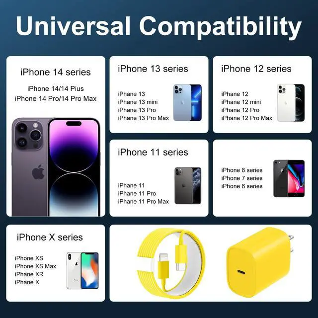 It can charge Phone 14, Phone 13, Phone 12 up to 50% in just 30 minutes which saves more time for you ^^ Safety Efficient Fast Charging Phone fast charger with extra long Phone charger cord bulids in multi-protection system avoiding your device from over-voltage, over-charge, over-heat and lightweight ^^ Hassle-Free Service2pack Phone charger block + 2pack Long Charger Lightning cable (10Ft). We will provide a 12-month worry-free warranty friendly customer service. Please dont hesitate to contact us and we promise to solve your problems within 24 hours