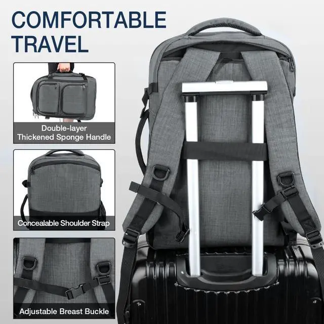 ^^ Comfort and Portability: Breathable and comfortable shoulder straps and chest strap (adjustable up and down on the chest) can reduce the pressure on the shoulders; Luggage straps can secure the backpack to your suitcase/luggage for easy carrying. Thickened carrying handles on the top and sides of the suitcase backpack are suitable for long time carrying use.