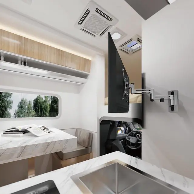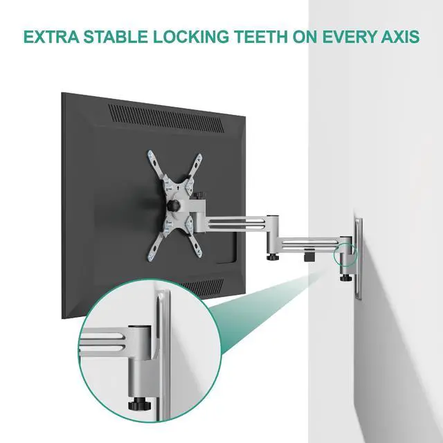^^ Lockable Design: with knob resists arm vibration and reduces noise when the vehicle is in motion. Stepped joints prevent in-transit vibration for increased stability. Easily place TV/Monitor at different extended distance from the wall for space saving. Easy to lock and release with a twist of the knob. A great choice for travellers.