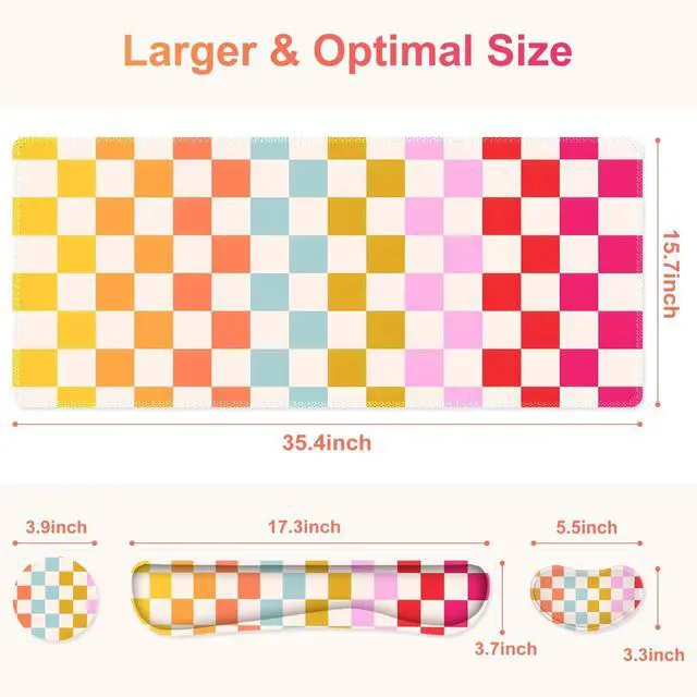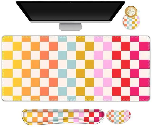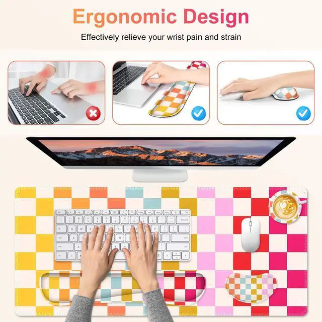 You deserve to have our comfortable typing relief mouse pad set 35.415. 7 IN Desk Mat + Keyboard Wrist Support + Mouse Wrist Rest + Coaster for DrinkMore unique pattern design desk pad set available for choice. A different mouse pad Will add some artistic personality to your life, unique style colors desk mat set will be a chic office desk decor and a good desk organizer, bring you a good mood, and increase work&study efficiency. This office desk accessories will be a wonderful gift for friends, family, classmates, and colleagueFeatures Wrist rest for computer keyboard and mouse with ergonomic design, filled with breathable memory foam materials, plays a role in minimizing discomfort and soreness from work and study.