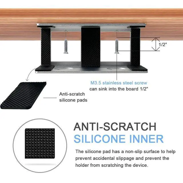 ^^ PREMIUM MATERIALS: Made of hard aluminum, this under desk holder is sturdy and long-lasting. The screws come as premium stainless steel, can be easily installed, reused, and not easily damaged.