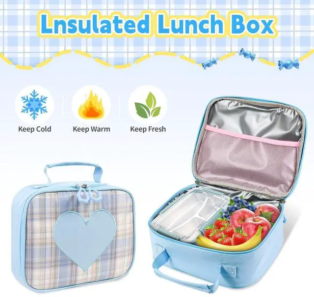 Girls Backpack with Lunch Box SetUpgrade your child's school essentials with our unique set, including a backpack, lunch bag, pencil case, crossbody bag, and coin purse. This comprehensive set offers style and functionality, ensuring your child is fully equipped for school. Give your child the ultimate school accessory set that combines practicality and fashion ^^ Multi-Compartment Cute BackpackOur cute backpack for girls features a large front pocket with a 180-degree opening, as well as hidden inner pockets and a laptop-padded sleeve. The front tool pockets provide multiple compartments for easy organization of essentials and small items.