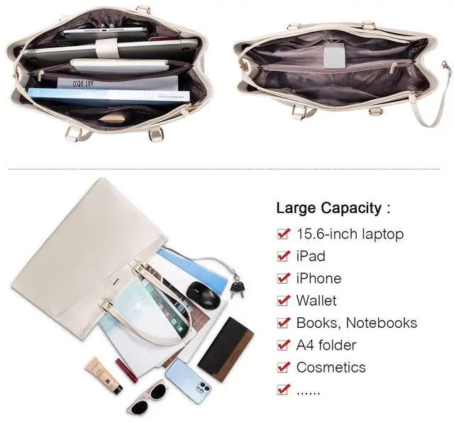 Women: Spacious Fashion Laptop Bag designed specifically for women, Suitable for 15.6 inch and smaller Laptop. Thickened soft protective foam pad, velcro strap secure to fully protect your laptop and tablet. The size is perfect for your laptop and all the essential that you need throughout the day.