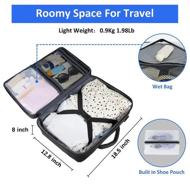 Backpack: The mens travel backpack for airplane designed with padded adjustable shoulder strapsand 2 padded handles make it easy to transform this weekender backpack from hand bag to backpack. Luggage Strap provides a more flexible carrying experience. Two padded grab handles are set on top and side of the personal item travel backpack.