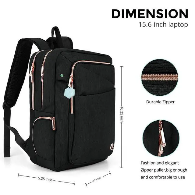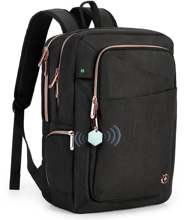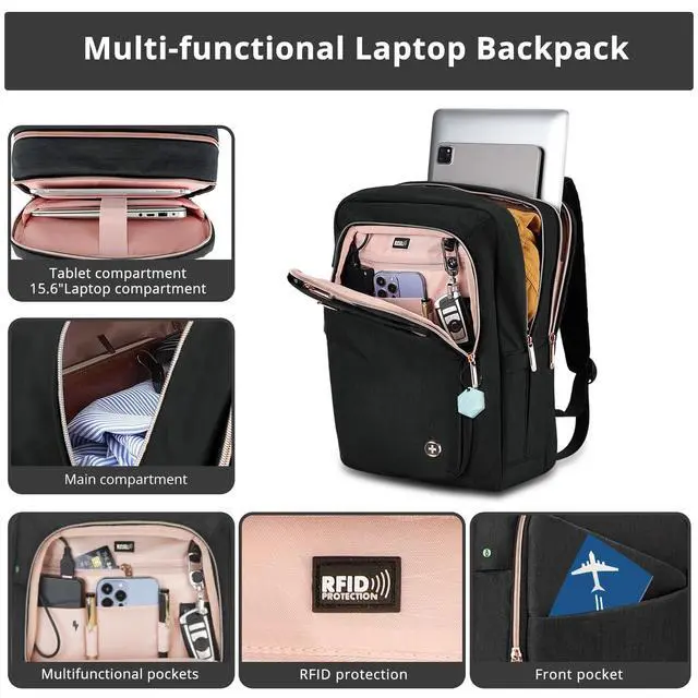 COMMUTER PICKSThis 23l compact business size backpack ( 1.79 lbs, 16H x 11W x 7D) keeps you organized with 4 separate large & several small compartments. Ideal for daily commuters carrying a 15.6 laptop, a tablet, textbooks, 2-3 pcs of clothes, bottle, wallet, keys and powerbank, and other daily essentials, not for overnight load. ^^ STYLISH PROTECTION Women backpack made with high quality materials and Swiss Design to provide both style and protection for your belongings. The velvet lined sunglass pocket gives your sunglasses comfort and protection.
