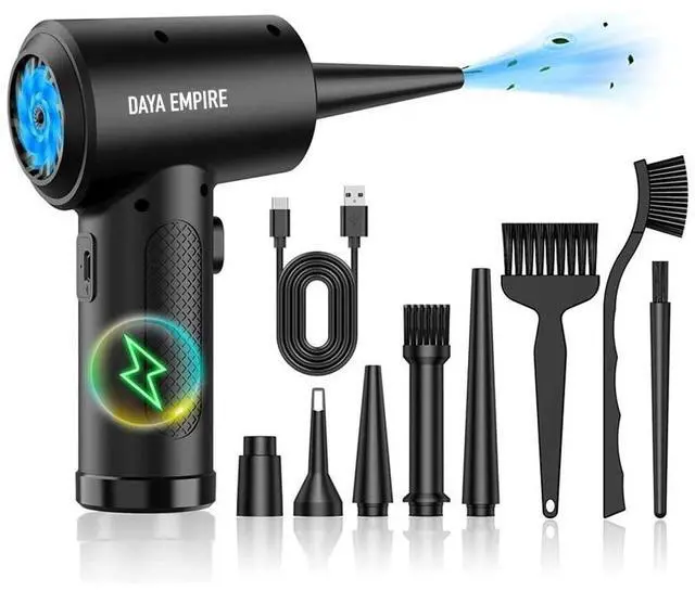 Compressed air - Multi-use to lots of placesElectric air blower can cleaning computer keyboard, laptop, camera, cleaning car, seat and blinds etc. Thin and long nozzle makes it easier to clean corners or place where hand cannot reach. Air dusters can even be used in products that need to be inflated, inflatable beds, lifeboats, etc. Compressed air duster - Various brush head nozzlesCordless air duster electric nozzle is Light weight and small size, design and comfortable to hold and space saving, convenient to carry around. Different cleaning sites, replace the appropriate, with strong wind, cleaning is easier, and can be used multiple times.
