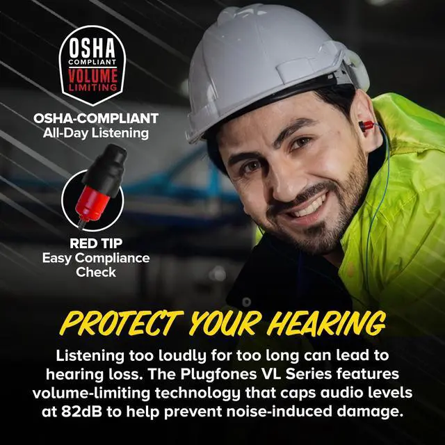 LIMITED VOLUME EARBUDS FOR SAFETY: WorkSafe Volume Limiting Technology keeps speaker volume below 82 dB & compliant with OSHA's max volume guidelines. The jack restricts volume level on any device.