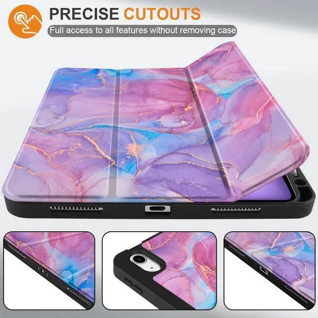 MEEgoodo Case for M3/M2 iPad Air 11 inch 2025/2024,Case for iPad Air 5th Generation/iPad Air 4th Generation 10.9 inch 2022 2020, Tablet Cover with Soft TPU Back Shell, Pink Marble Texture