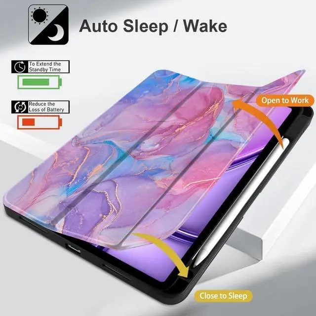 Generation(2022/2020) Characteristic: 1. The case is made of premium PU exterior, microfiber lining and soft PTU back cover 2. Case automatically wakes your tablet when opened and puts it to sleep when closed 3. You can easily fold the cover into different positions to create a stand for reading, viewing, typing, or making FaceTime calls 4. Built-in pencil holder, grab your tablet pencil effortlessly whenever you want, easily carry your tablet pencil with your device 5. Easy to Installation and remove 6. Convenient to use all the controls and features