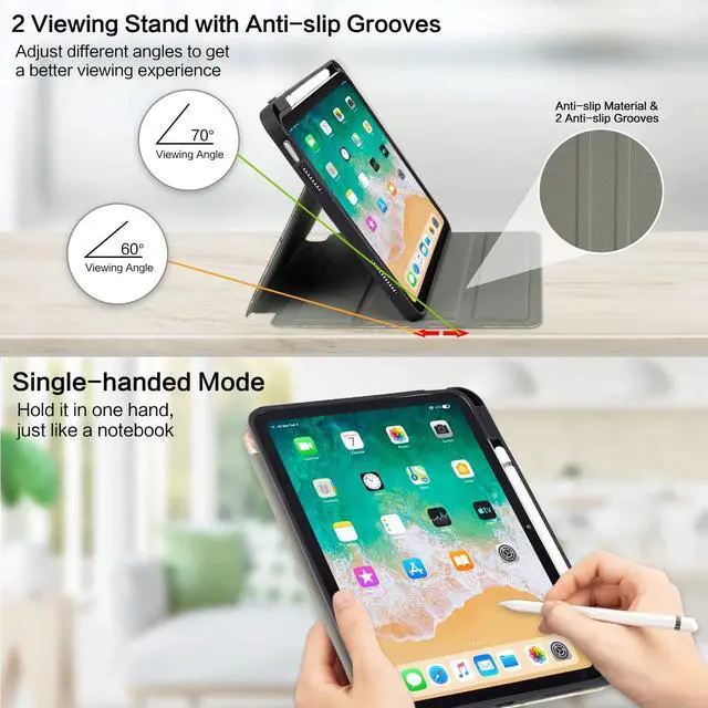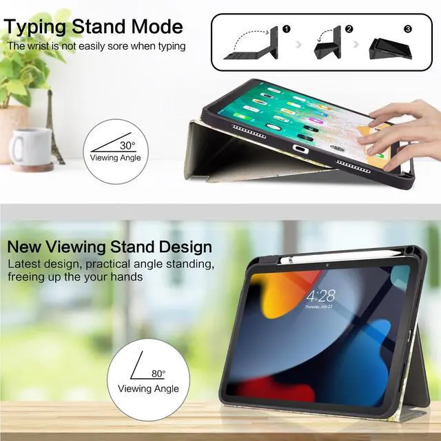 Typing Stand Model: 30 degree angle stand. The wrist is not easily sore when typing; Viewing Stand 60 degree and 70 degree with anti-slip groove: Adjust different angles to get a better viewing experience; Viewing Stand 80 degree angle stand. Latest design, practical angle standing, freeing up the your hands. ^^ Built-in Pencil holder & Precise Cutouts-- Vimorco for iPad A16 Case 11-inch 2025, for iPad 11th/10th Generation Case come with Pencil holder, this design to grab or carry Pencil easily and conveniently (Pencil is NOT Included! ). Precise cutouts let you access to all ports, speakers, controls and cameras. ^^ Smart Auto Sleep/Wake-- Vimorco Case for iPad (A16) 11th Generation 11 Inch 2025, for iPad 10th generation case 10.9 inch 2022 come with built-in magnetic strip ensure it automatically wakes your device when opened and puts it to sleep when closed to save battery life.