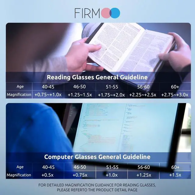 READING GLASSES WITH BLUE LIGHT PROTECTION - Blue light blocker lenses with UV400 protection, anti glare and blocks harmful blue light, for people who work long hours on smartphone, computers, tablets, or other digital devices. ^^ READING MAGNIFICATION - Magnification glasses option, with + 0.5 to + 3.0 magnified lenses. Please choose the right power for your eyes. If you're not sure what strength you need, just refer to the Recommendation Chart in the product images. ^^ LENS TECHNICAL CHARACTERISTICS - 1. Multifunctional coatings, like UV400 protection, anti scratch coatings.