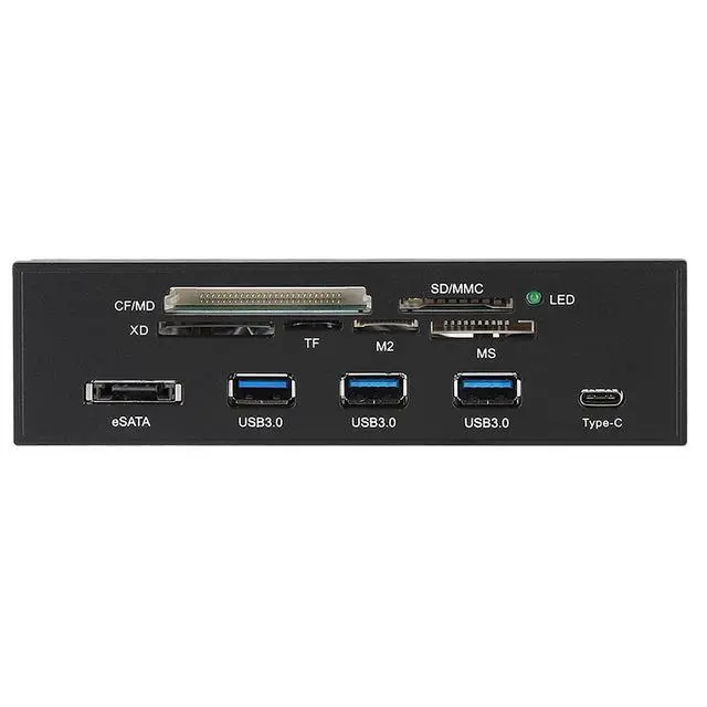 High speed front USB 3.0 interface for an efficient and effortless data transfer. ^^ 6 card slots offer quick and easy access to the most common used card formats, support M2, MSO,, MS, XD, 64G CF card. ^^ material ensure durability, LED indicator make you keep an eye on work status. ^^ Equipped with eSATA and USB 3.1 port to meet your needs. ^^ Can be easily and neatly installed into a 5.25