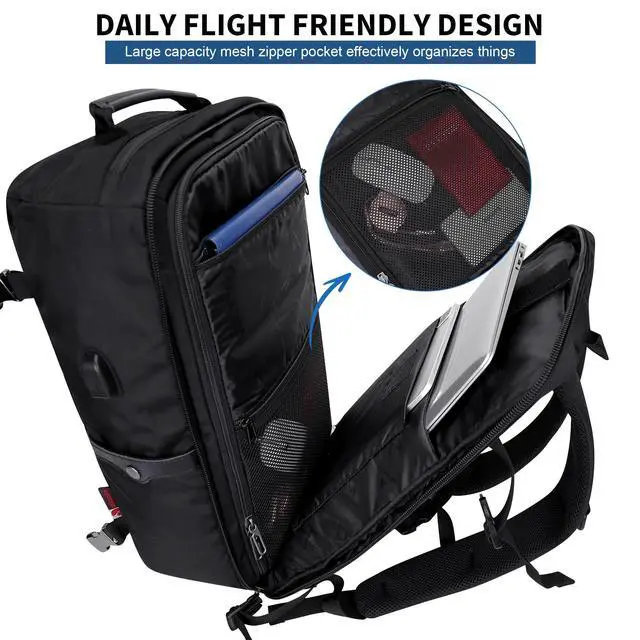 IDEAL FOR AIRPLANE TRAVELING: The main compartment can be accessed from the quick access front pocket for easy removal of travel essentials during travel. The main compartment can also be zippered like a suitcase for easy packaging and unpacking. This multifunctional luggage back pack meets the TSA Flight Approved requirements, it's idea for airplane travel. The computer compartment can be opened at 90 to 180 for security scanning, helping to quickly and easily pass airport security checks;
