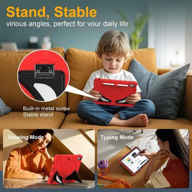 Function Stand: Auorld Case for ipad a16 case comes with a fun eye shaped stand that supports 60 and 30 viewing and can be easily kicked out as a hands-free stand, allowing your child to enjoy their videos, games, or sketches in the comfortable viewing position ^^ Adjustable Shoulder Strap and Pencil