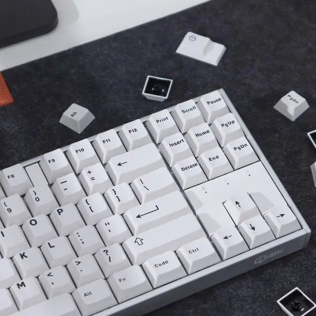 ^^ Custom Keycaps: These black white keycaps suitable for 60% 65% 70% 75% 80% 96% (61 64 68 84 75 87 96 98 104 108) keyboards like rk61, rk68, gk64, gk61, rk84, gh60, etc. These mechanical keyboard keycaps are compatible with cherry mx, gateron, kailh, outemu and any key switches with cross-shaped switches. It is a good choice for you to DIY your mechanical keyboard.
