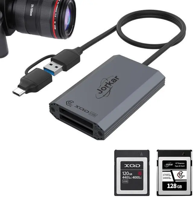 Professional CFexpress Type-B XQD card reader USB-C, makes it an ideal card reader for photographers, for Cameras Camcorders Nikon Z6/Z7/Z9/D6/D5/D850/D500, for Canon EOS-1DX/C300/C500/R5 R5C R3, for Panaso GH6/S1/S1R/S1K, DJI Ronin 4D. ^^ The latest USB 3.2 GEN 2 technology with a transfer speed of 10Gbps (1250MB/S). (Backward compatible with USB 3.0 ) Allows you to download high resolution images and 4K/8K video clips from your camera to your PC faster. ^^ Exclusive USB A and USB C dual interface, exclusive form factor and metal housing. Palm size, 1.6 ft length connection cable, easy to carry, no afraid of crushing.