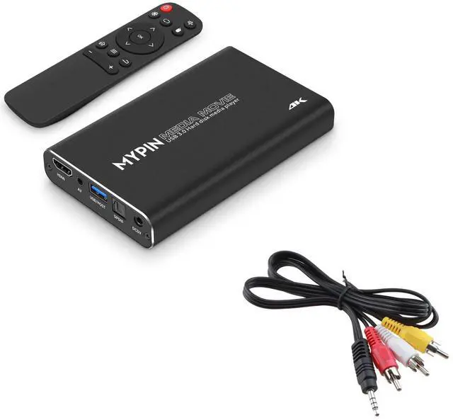 4K@30hz USB3.0 HDMI Media Player with One AV Cable, Support 2.5" SATA HDD with HDMI/AV/Optical Output, for Videos/Music/Photos from USB Drive/SD Card/4 GB Internal or Up to 8TB External HDD