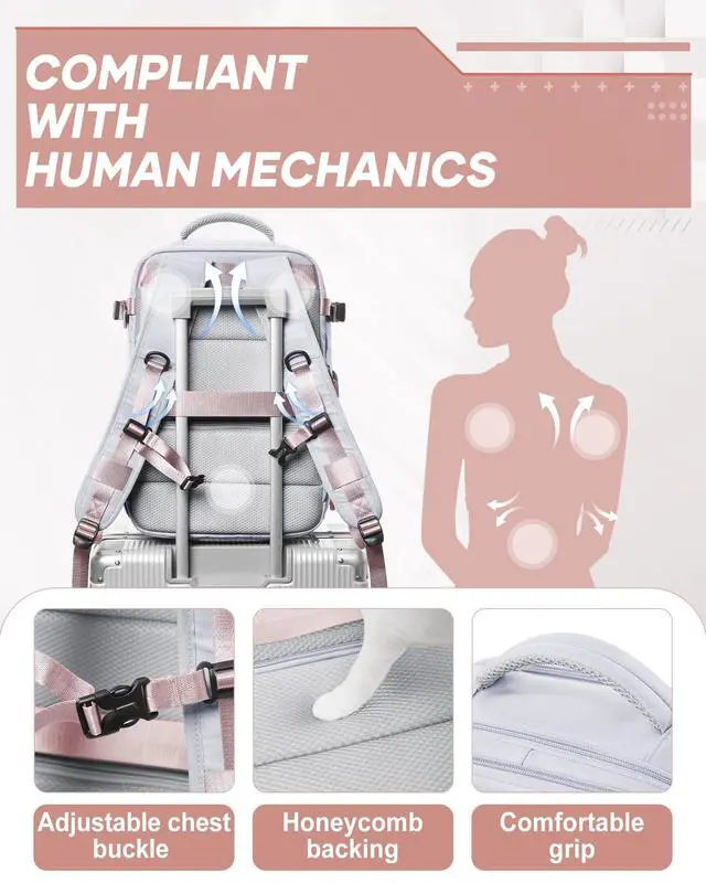 ^^ Durable Design: This travel backpack with vacuum system is made of thickened polyester fiber that can be reused for many years and can withstand rainwater. The sturdy metal double zipper and upgraded reinforced stitching extend its lifespan. Honeycomb back cushion design enables excellent air circulation and keeps the back cool and dry. Adjustable padded shoulder straps and shock absorbing foam ensure all day comfort even on long trips.