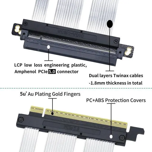 ^^ Designed with full pins (164pins in total) connected even those reserved pins ^^ It is recommended to check the installation hole size and the position, it may not match with all PC cases. ^^ please also notice that the protection cover area of the female end is larger than some other PCIE cable, and make sure it will not conflict with fans.