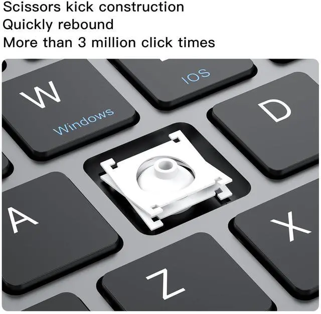 USB receiver): Bluetooth 1, Bluetooth 2, Bluetooth 3 and USB 2.4GH z wireless receiver. Switch easily between modes with Fn+1/2/3/4 ^^ Scissor Switch & Multi functional shortcut key design: Each key features a stable scissor mechanism with a lifespan of over 3 million keystrokes the buttons are very smooth and do not get stuck. Press without noise and rebound quickly, effectively improve your work efficiency ^^