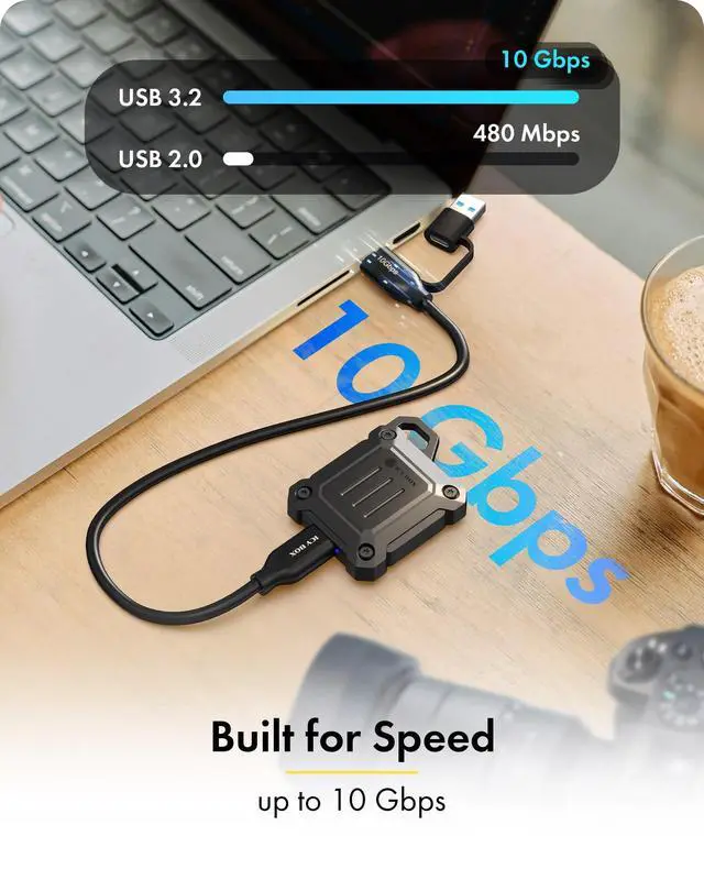 [Supports Both NVMe & SATA M. 2 SSDs] Compatible with M-Key and B+M-Key SSDs (NVMe & SATA), this enclosure fits M. 2 22302280 drives and supports up to 4TB. Ideal for flexible workflows and upgrading existing storage. ^^ [Durable Full Metal Build] Built for the field with a solid metal housing that resists dust and shock. A dependable choice for photographers, videographers, and mobile professionals working in tough environments. ^^ [Portable with Lanyard for Easy Access] Compact and lightweight with an included lanyard, it easily attaches to your camera bag or gear loop so your files are always within reach on location or during travel.
