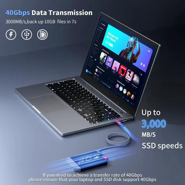 ^^ 40Gbps Data Transfer: Fast USB C cable for Thunderbolt 5 cable right angle 10 ft offers transfer speeds of up to 40Gbps, allowing you to transfer large files and stream high-resolution content in seconds. If you need to achieve a transfer rate of 40Gbps, please ensure that your laptop and SSD disk support 40Gbps ^^ 240W