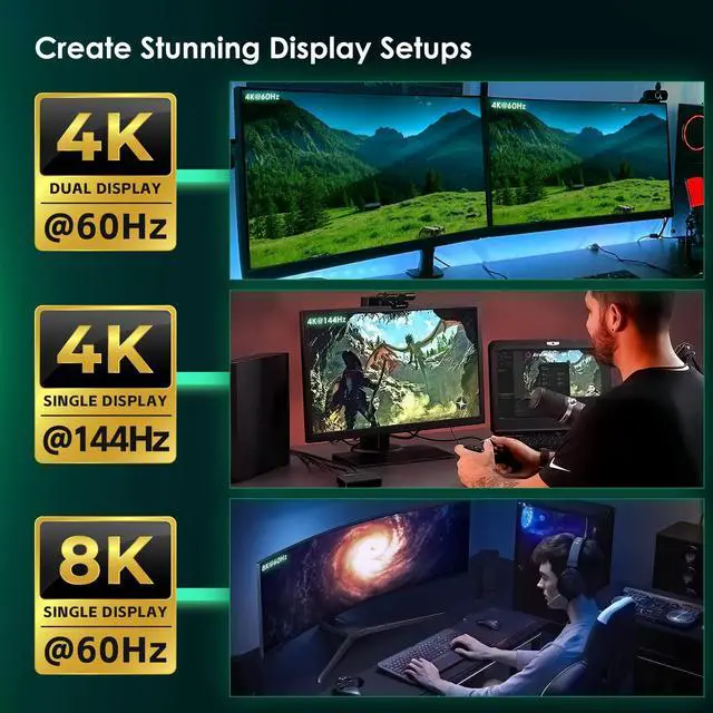 Display: 240W USB 4 2.0 cable for USB C right angle Thunderbolt 5 cable 10ft is capable of running ONE 8K@60Hz / 5K@60Hz / 4K@144Hz display or dual 4K@60Hz displays, providing crystal-clear visuals and an immersive viewing experience. Please ensure that your both devices support it.