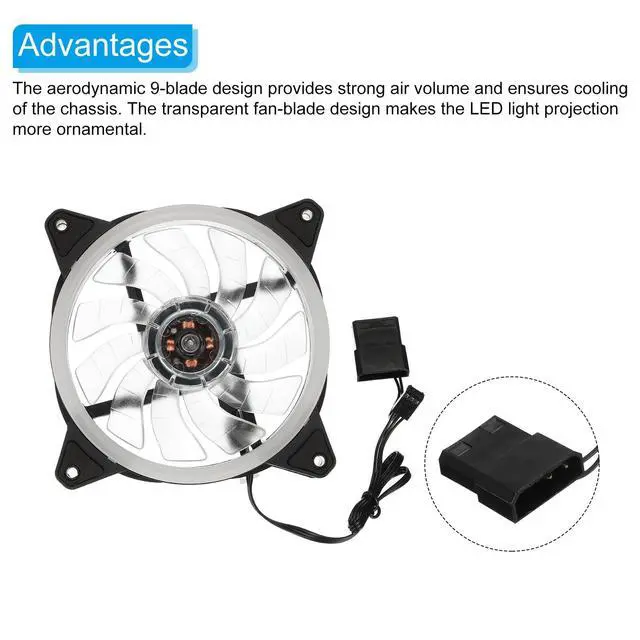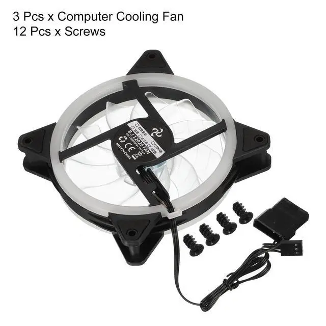 In the package of: 3pcs x Computer Cooling Fan, 4pcs x ScrewsAre there any advantages of the product? Double-sided aperture creates better lighting effects for the cooling fan. The fan frame is equipped with anti-shock pad, which has good anti-shock effect and reduces resonance noise. How to use it? Insert the fan into the mounting location, aligning the screw holes with the corresponding holes on the case. What should I notice? Ensure that you have a 4-pin fan header on your motherboard or a compatible fan controller to connect the fan to.
