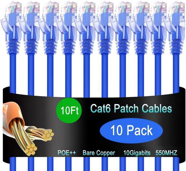 Transmission: CAT6 cables are made of 26 AWG stranded bare copper with reliable performance and durability. Patch cable cat6 is ideal for high speed applications up to 10 Gbps and tess pass. Cat6 ethernet patch cables exceed the ANSI TIA 568.2 D standard. ^^ Flexible for