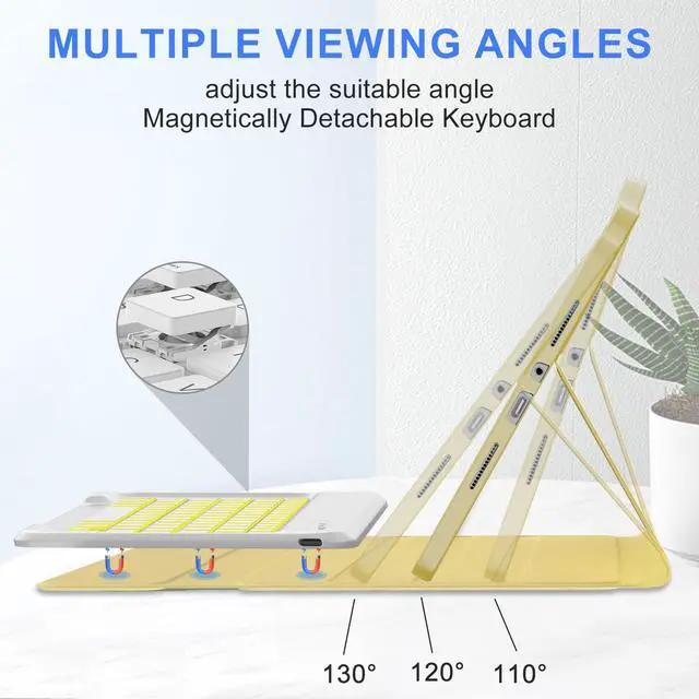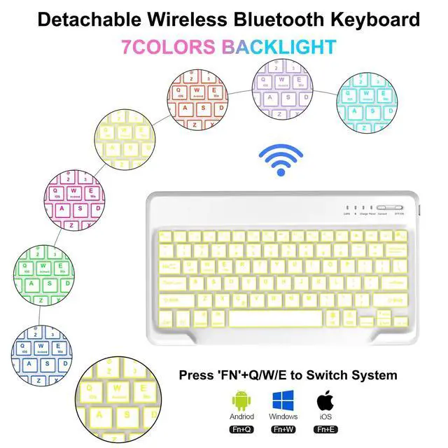 • Backlight KeyboardEquipping with 3 adjustable levels of brightness and 7 brightness levels make typing fun and easy in dark or bright environments. The lightweight Bluetooth keyboard is ultra-thin, it magnetically attaches to the case, and can be removed if not needed. Bluetooth connection is simple.Built-in long life Lithium-ion and high quality battery keyboard, Adjustable backlight allows you to personalize your setup, match specific working conditions and showcase your favorite colors.