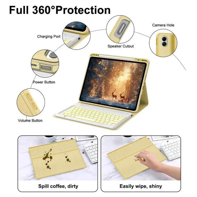 IVEOPPE Keyboard Case for Xiaomi Redmi Pad Pro 12.1 Inch 2024/Xiaomi Poco Pad 12.1", 7 Colors Backlit, Detachable Bluetooth Wireless Keyboard Slim PU Stand Cover with Pencil Holder,Yellow