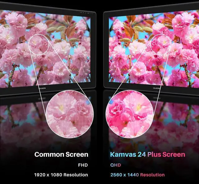 Stunning Visuals: The Kamvas 24 plus graphic monitor with 23.8" 2.5K QHD IPS screen delivers stunning, life-like image quality with high pixel density and fine detail. Together with full lamination technology, and anti-glare glass design, the graphics drawing monitors provide more highly immersive image quality and can also present the same image quality within a wide 178 viewing angle. ^^