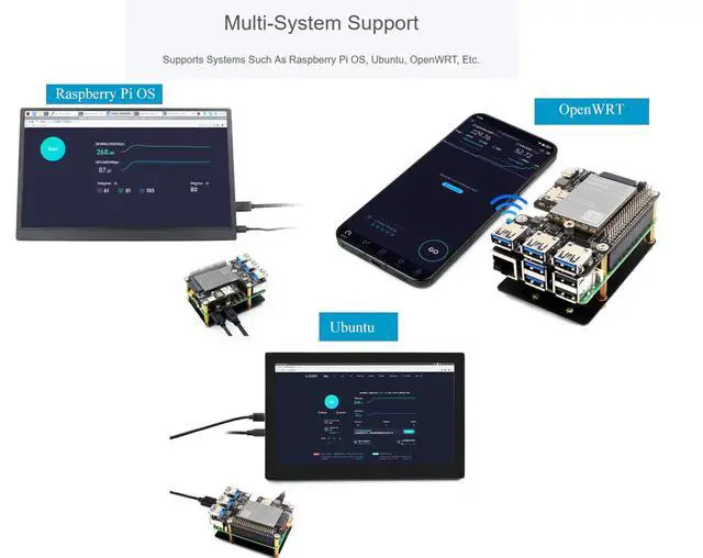 2 Key B interface: Onboard M. 2 (NGFF) Key B slot, supports SIM7600XX-M. 2, SIM82XX and RM5XX series 4G/5G modules and is compatible with 3042/3052 packages ^^ Supports systems such as Raspberry Pi OS, Ubuntu, OpenWRT, etc ^^ Comes with 5G-4IN1-PCB