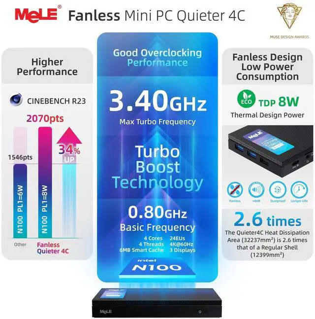 12th Gen Alder Lake-N100 - This micro PC equipped with the powerful 12th Gen Alder Lake-N100 processor. Featuring 4 cores and 4 threads, with a maximum turbo frequency of 3.4GH z, this fanless PC delivers a 30% performance boost compared to its predecessors, the Celeron N5095 and N5105. With a low TDP of just 8W, it achieves robust performance at an exceptionally low power consumption ^^ High-Speed Performance and Expandable Storage - Enjoy faster computing with 32GB of LPDDR5 RAM (4800MHz) and 512GB storage. Ideal for home working, business offices, IoT, school education, and billboards.